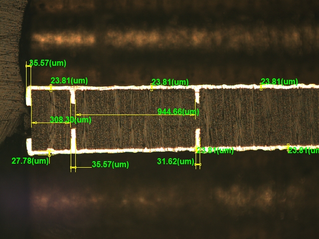 金相顯微鏡確認孔銅連接各層切片效果